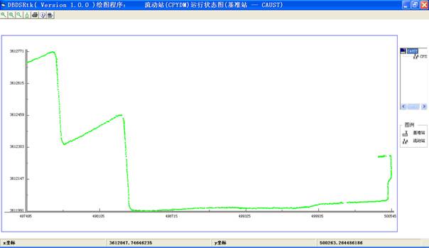 2)DBDSRtk软件自动化程度高。在准备好所需文件(RINEX格式的BDS观测值O文件、卫星星历文件(暂时仅为广播星历)和基准站坐标文件后,采用软件提供的数据处理引擎器和按钮,即可自动地解算出流动站的各历元位置。并可利用绘图功能,绘制流动站的运行图。